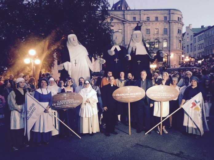 L’Église catholique de Québec a participé au défilé d’ouverture des Fêtes de la Nouvelle-France avec la présence de trois marionnettes géantes qui représentent saints François de Laval, sainte Marie de l’Incarnation et bienheureuse Catherine de Saint-Augustin (conçues à l’occasion du Congrès eucharistique international 2008).